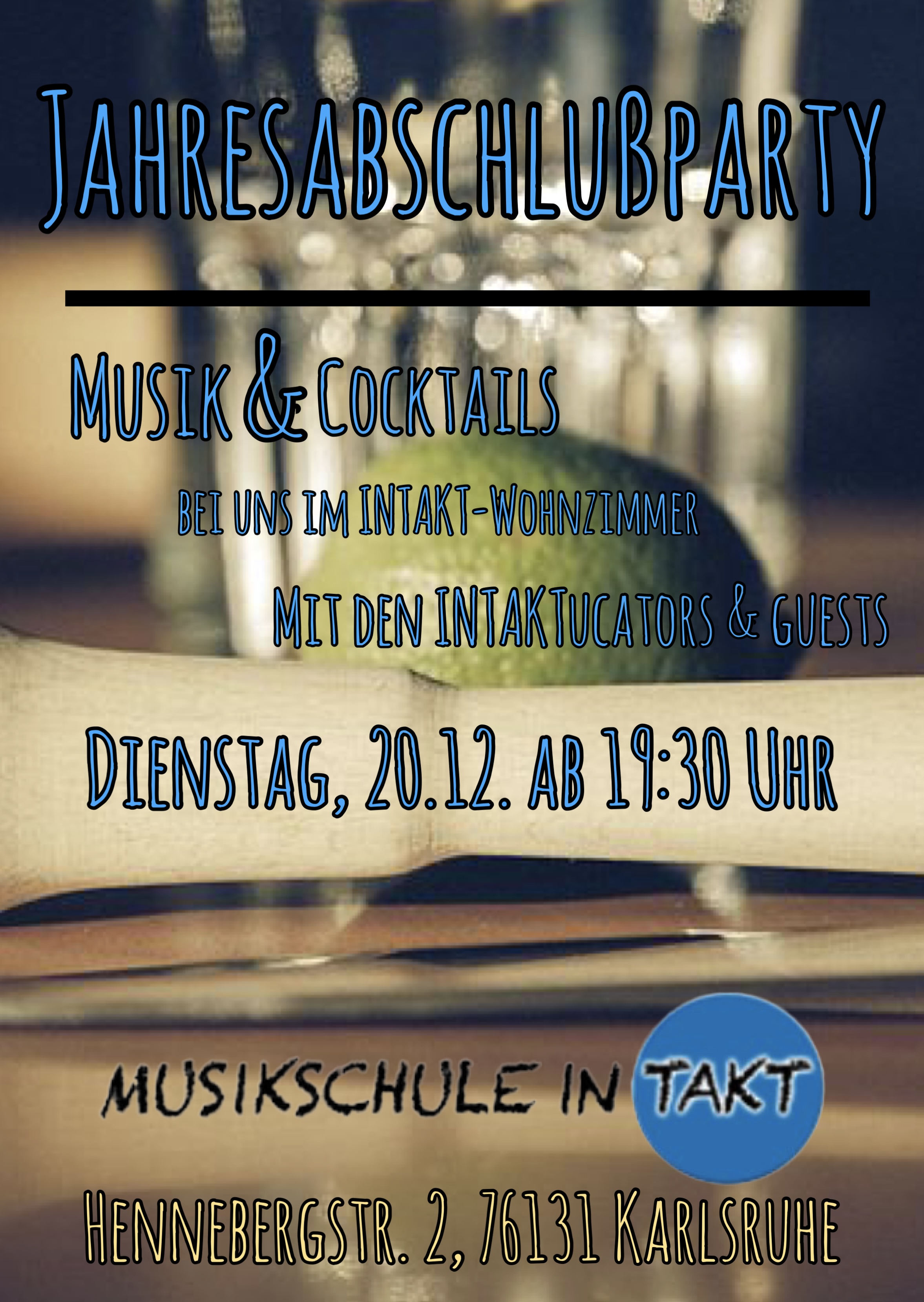 Bei Musik von den INTAKTucators & guests, leckeren Cocktails und einer super entspannten Wohlfühlatmosphäre in unserem INTAKT-Wohnzimmer feiern wir das Jahr 2022 und freuen uns auf das Jahr 2023!