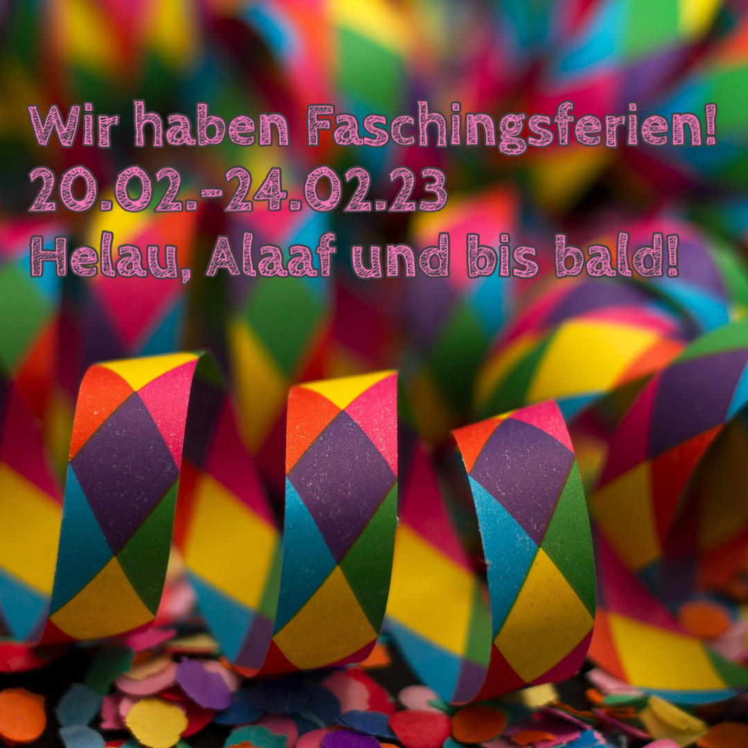 Wir haben vom 20.02.-24.02.23 Faschingsferien!